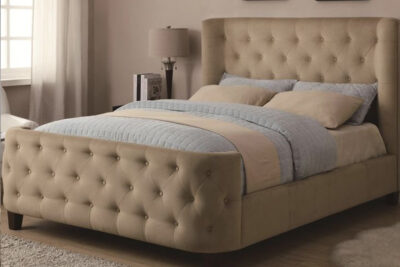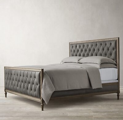 Κρεβάτι υπέρδιπλο κλασσικό σχέδιο με ύφασμα λινό και καπιτονέ