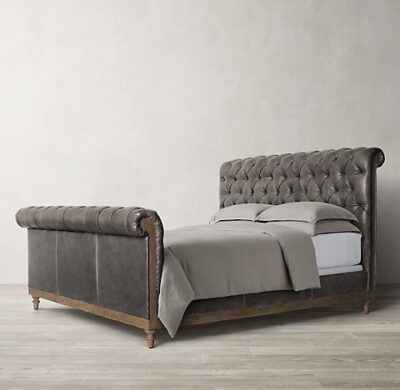 Κλασσικό κρεβάτι από ξύλο καραγάτσι πεπαλαιωμένο δέρμα